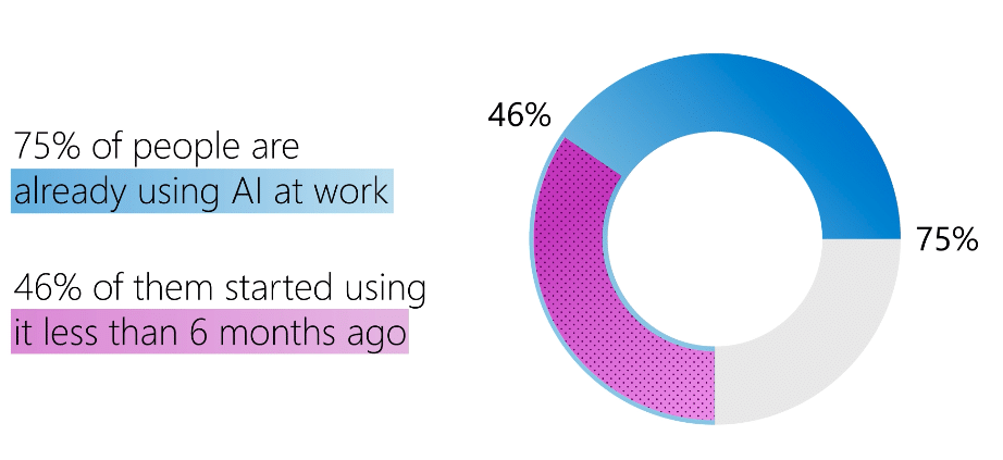 Recent findings demonstrate a stark acceleration in AI usage among knowledge workers, with a Microsoft survey revealing that 76% are now utilizing AI at work, a significant jump from the previous 10% noted by Gallup in May 2023. The rapid adoption highlights the evolutionary pace at which industries are embracing technology to enhance operational efficiency and decision-making processes.